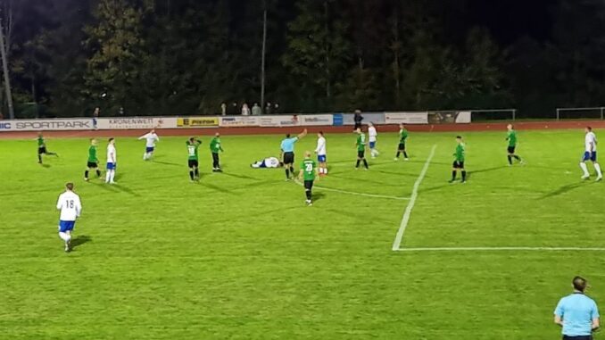 Danach wurde es ein hektisches Abendspiel mit vielen Unterbrechungen, Fouls und Provokationen. Dies gipfelte in einem Platzverweis für Fortuna Kirchfeld. Yannick Roos zeigte sich an diesem Abend mehrfach von der unsportlichen Seite und wurde wenige Minuten vor dem Ende des Feldes verwiesen.