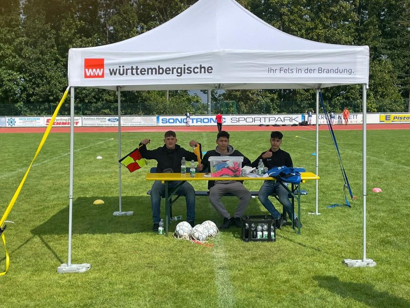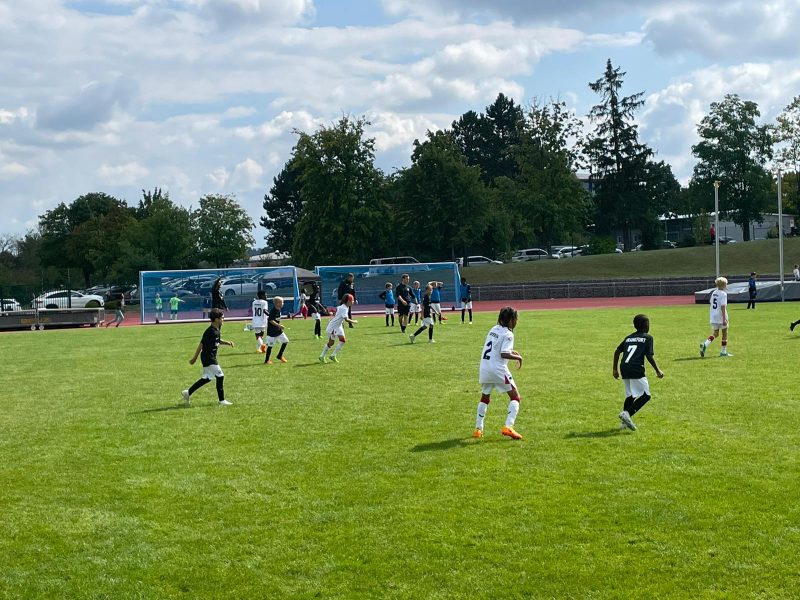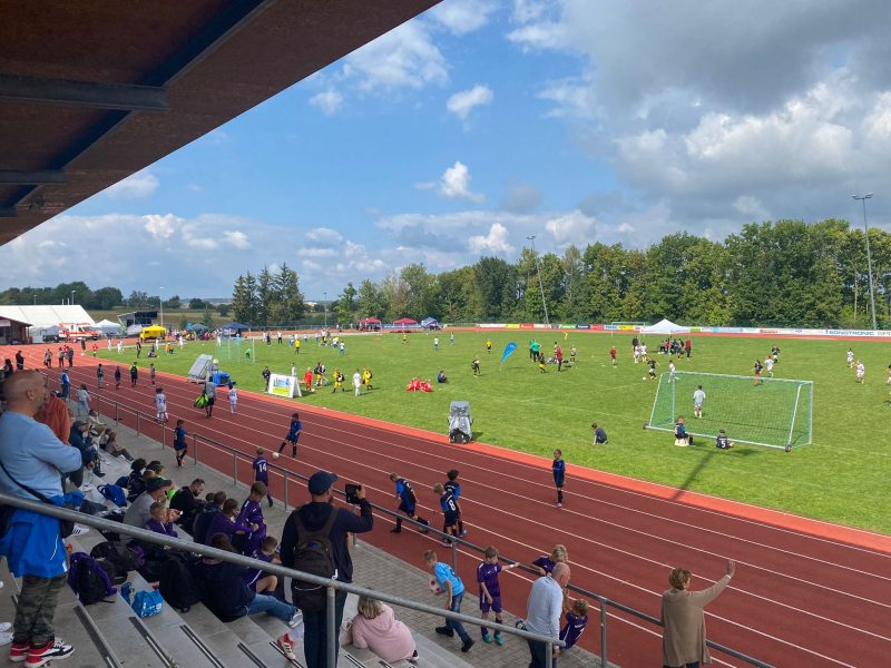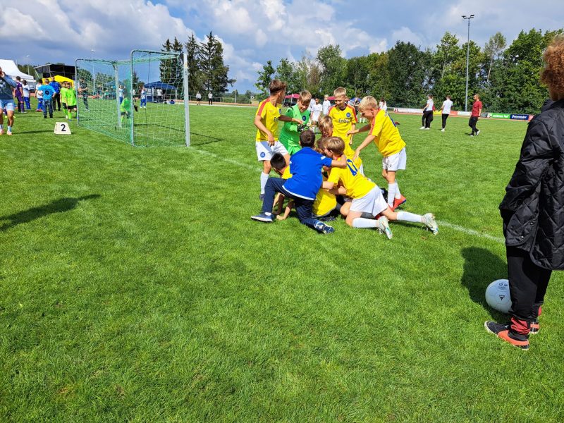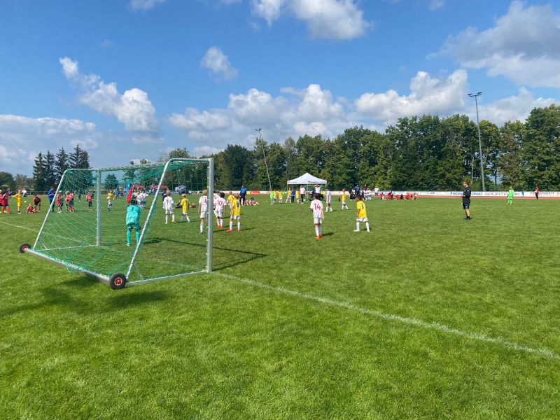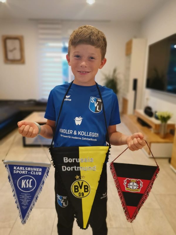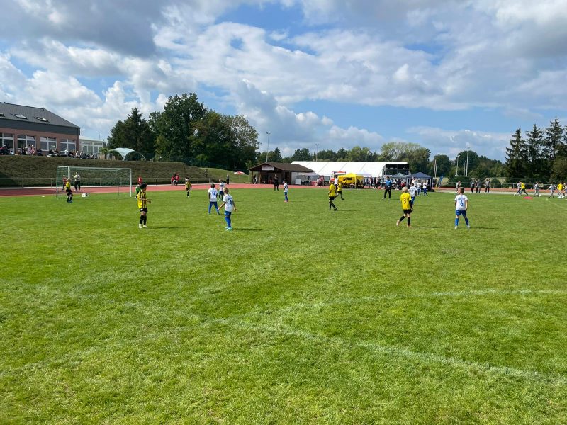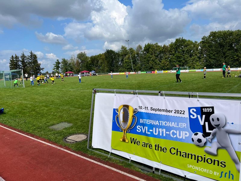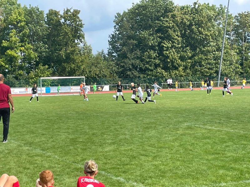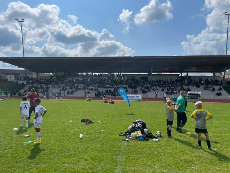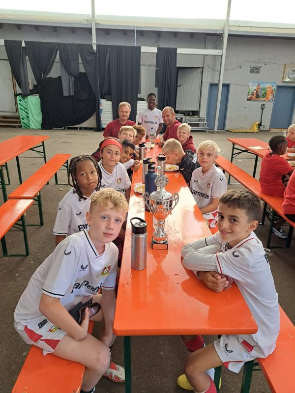 Bilder 2022 Siegerehrung Fortuna Düsseldorf Siegerbild Fortuna Düsseldorf Zweitplatzierter KSC Finalspielbild Siegerehrung vor Tribüne Die Pokale der BVB spielt Spannende Spiele satt